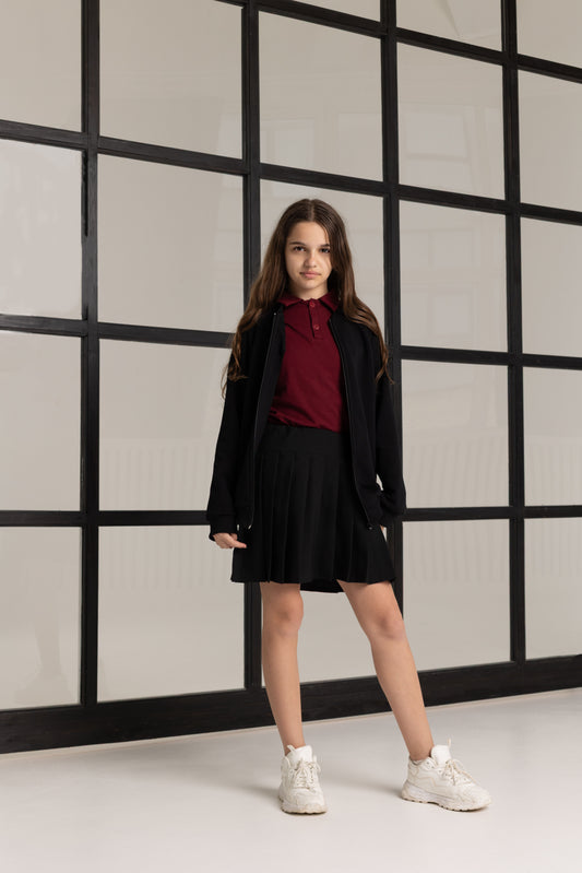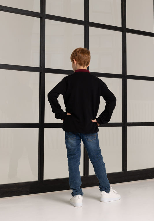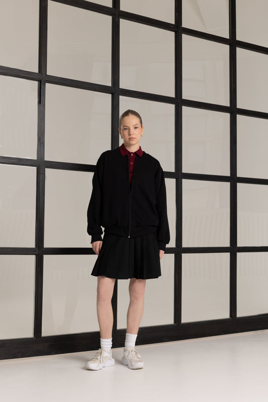 Mokyklinis juodas užsegamas unisex džemperis dideliems